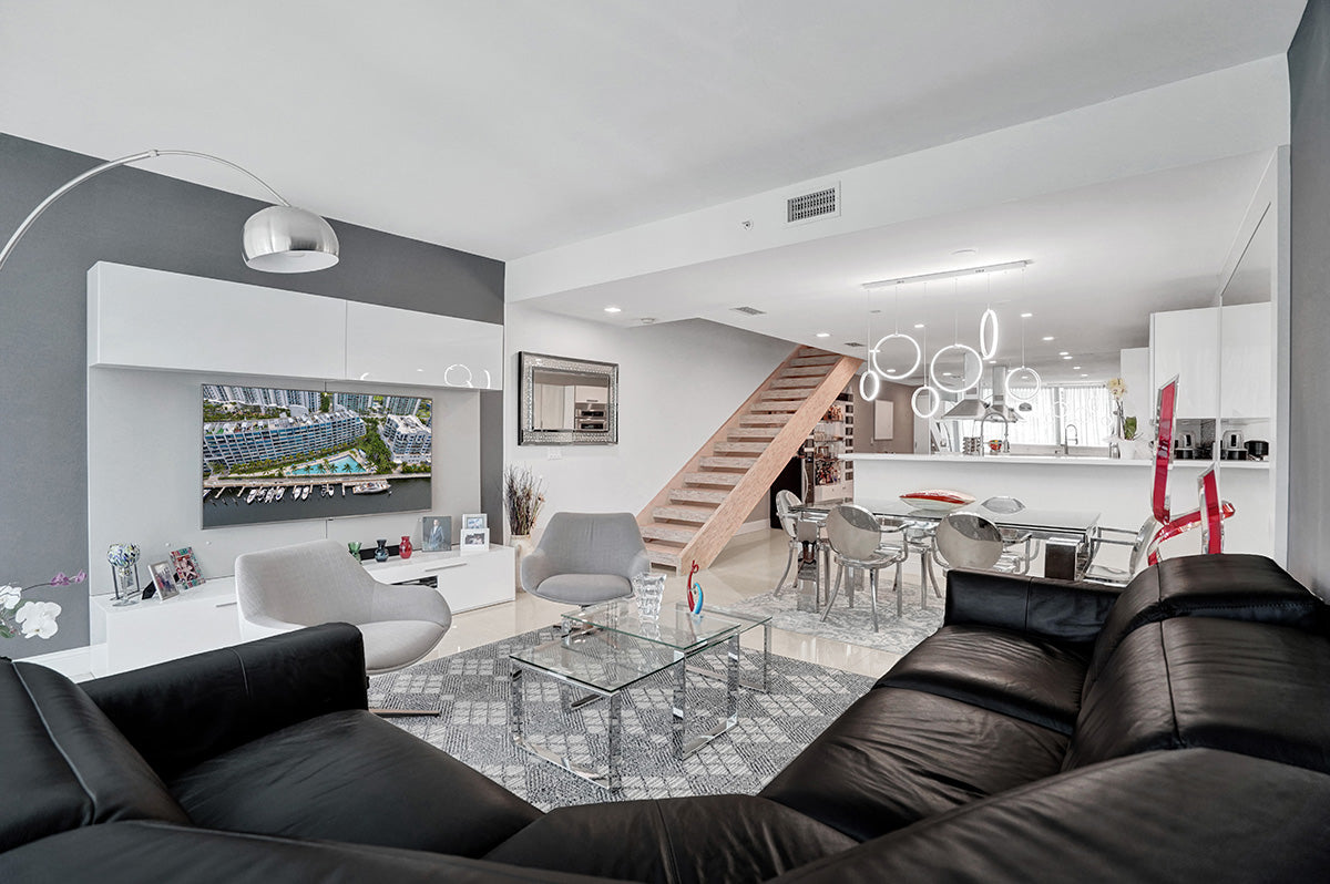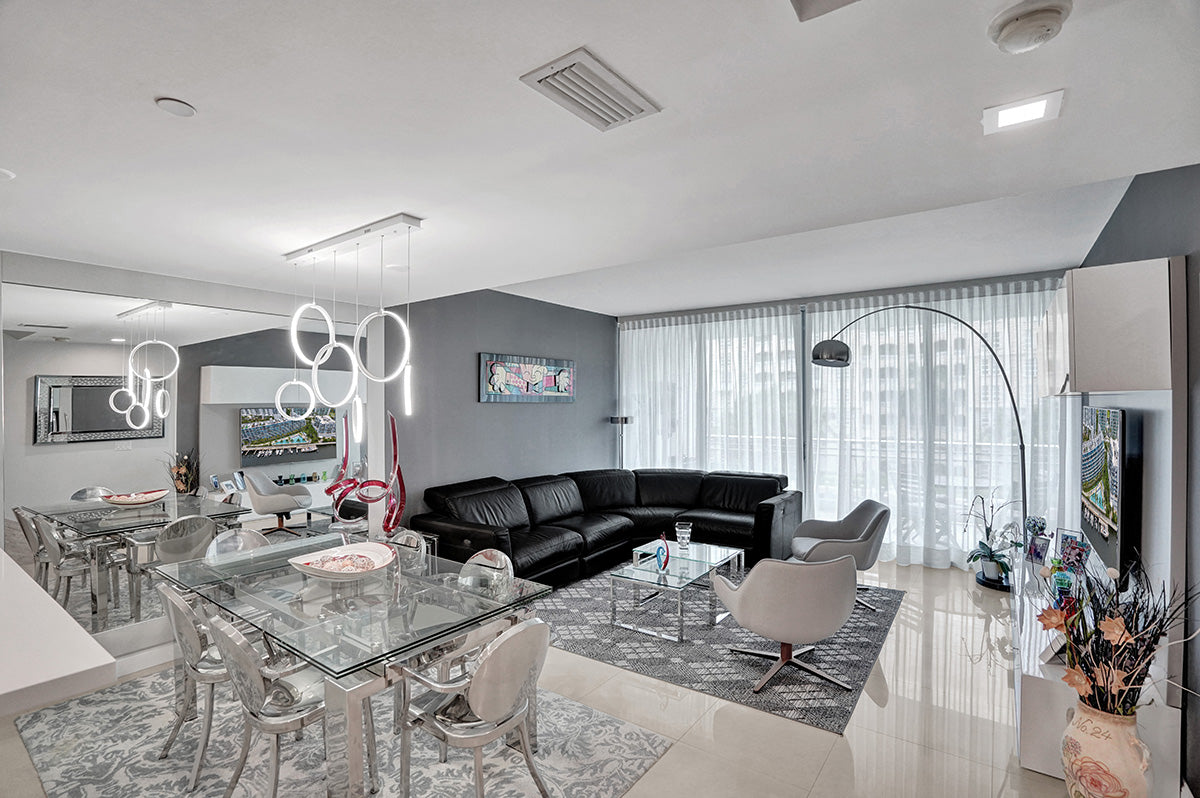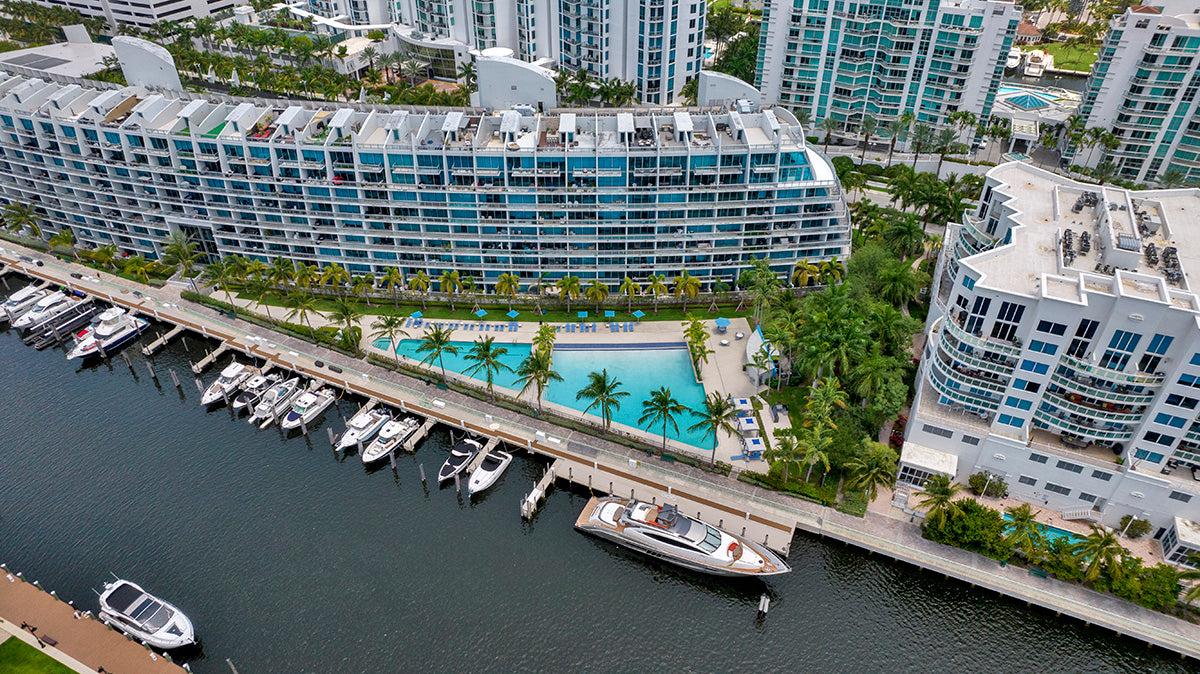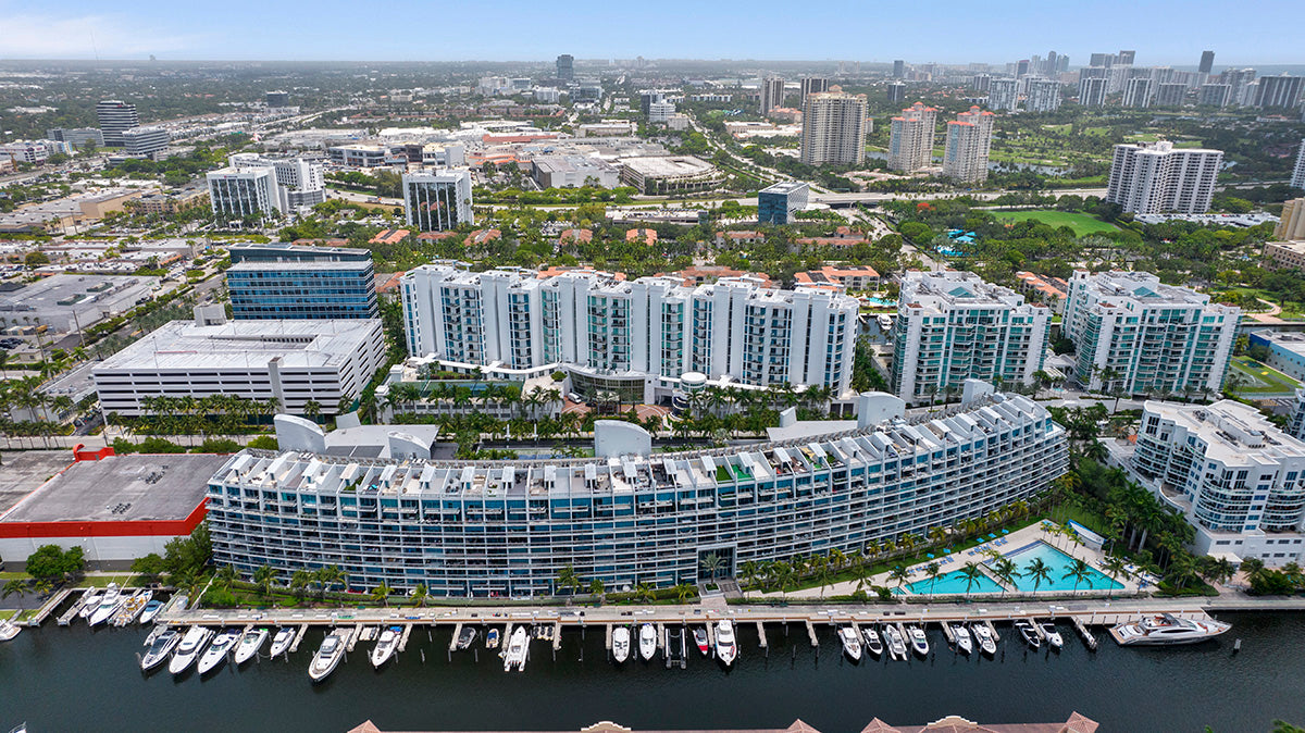 Located in Aventura and designed by world-renowned architect Carlos Ott, Artech is a stunning landmark, a state-of-the-art nine-story luxury condo building that resembles a gleaming cruise ship. 232 modern condos offer Italian cabinetry, wood or marble flooring, stainless steel accents, floor-to-ceiling windows, and glass-enclosed terraces. Designer finishes include vessel sinks, brushed nickel fixtures, and marble vanities. Several floor plans are available at Artech, ranging from studios to three-bedroom homes. All condos have touchscreen monitors with smart-home features that also access the development’s concierge service.